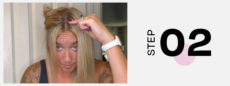 STEP 02: Starting with the front pieces of hair, scoop product into your hands and apply starting at the roots and working your way to the ends. Be sure not to touch the tied-up sections of hair. Mixing colors could render blended color results.