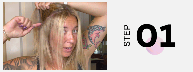 STEP 03: Take the top layer and back section of hair and place them in a ponytail. Repeat on the other side.