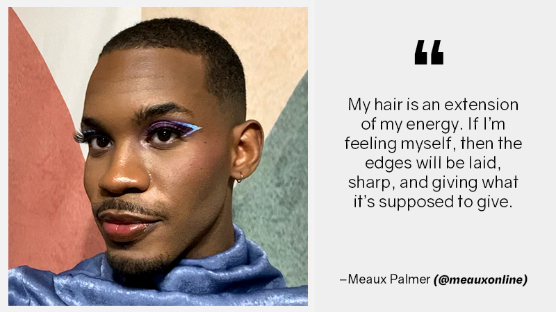 My hair is an extension of with my energy. Sometimes when my hair isn’t looking its best, my friends know that I’m having a rough day. If I’m feeling myself, then the edges will be laid, sharp, and giving what it’s supposed to give. I recently added Silver to my hair, because I wanted to highlight this futuristic, sleek vibe I’m aiming for. I try to use my hair to amplify the way I want to feel.