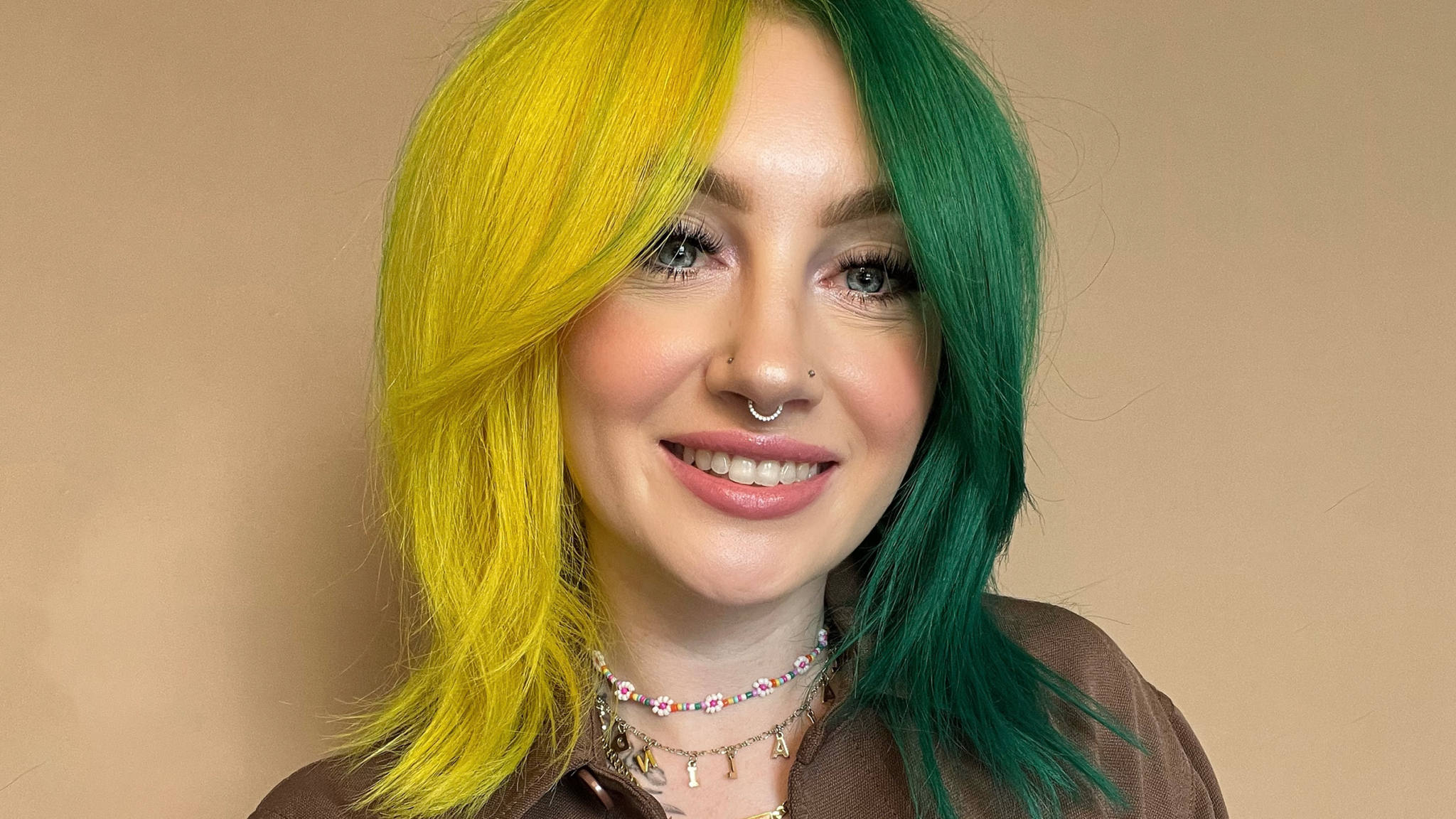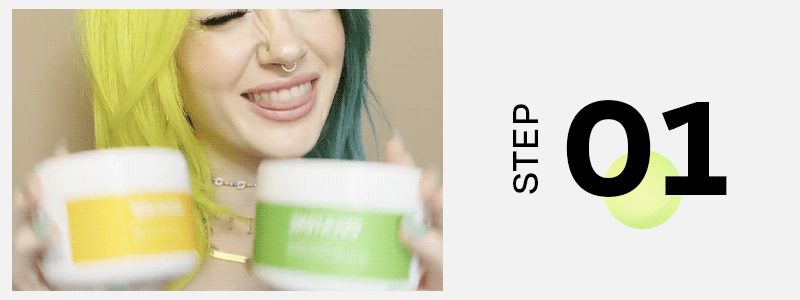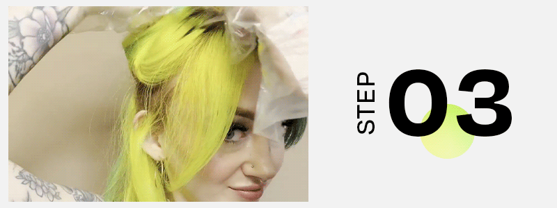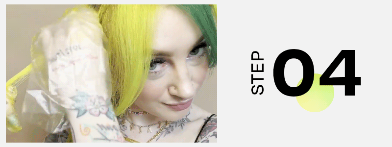 Find two shades that you’d like to color your locks. From high contrast colors, a pastel split, or even a trad black and white ode to Cruella de Vil for a truly bold statement. @lalalindzie uses Extreme Yellow and Extreme Green to get her half and half hair.
