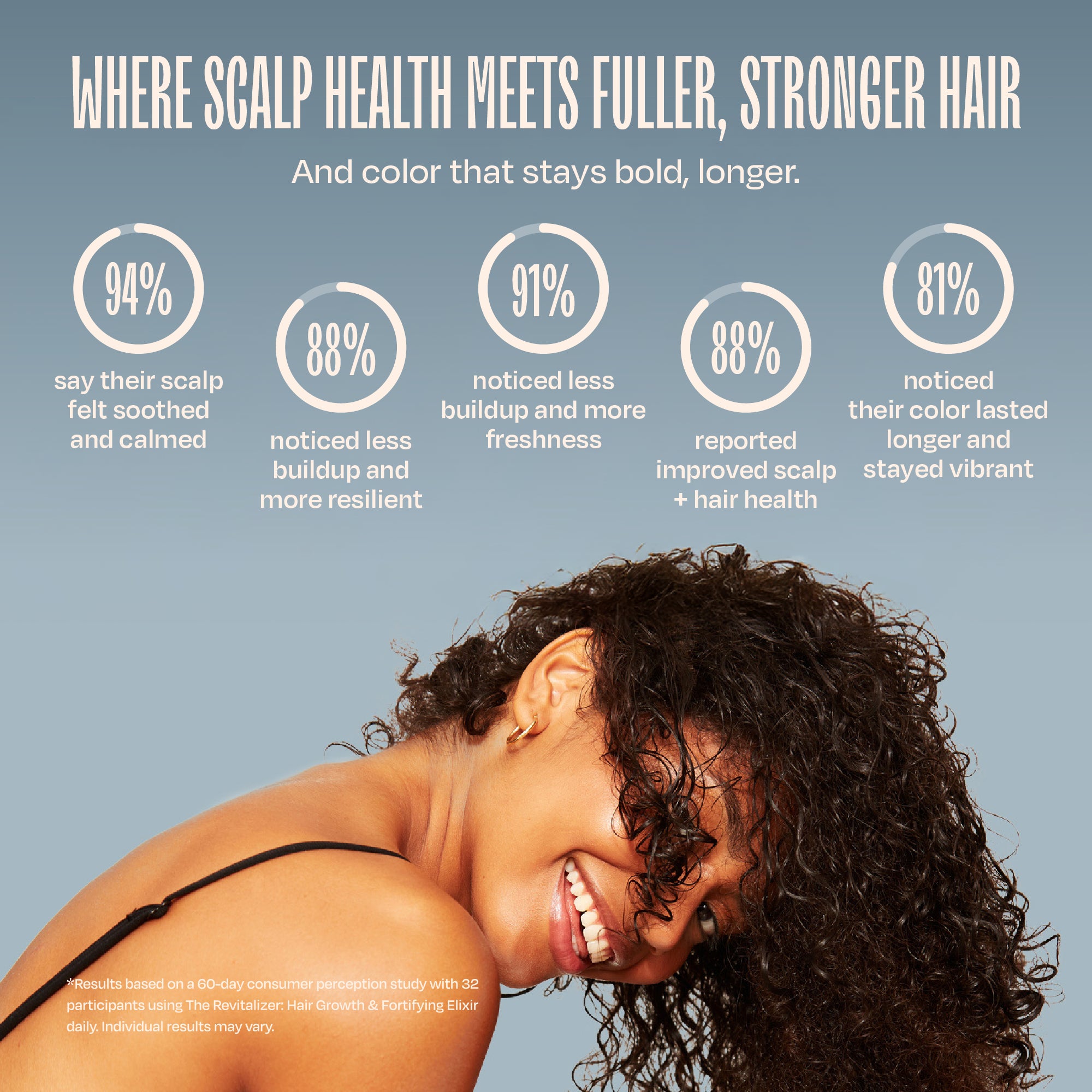 *Results based on a 60-day consumer perception study with 32 participants using The Revitalizer: Hair Growth & Fortifying Elixir daily. Individual results may vary.