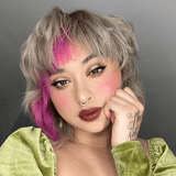 I threw magenta over bleached and green hair to get this magenta and purple look.