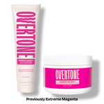 Overtone Magenta Majesty color depositing treatment mask with pink paste on a white background