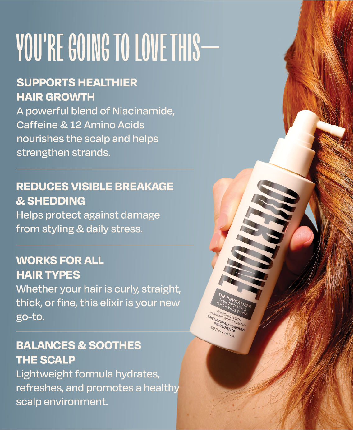 I’ve been using The Revitalizer for about a month now, and I’m already noticing such a difference! My scalp feels way less dry, my hair feels stronger, and I’ve had way less breakage since I started using. I usually apply it at night and massage it in with the scalp massager, which is so relaxing. The formula is super lightweight and doesn’t make my roots greasy at all, which is a huge plus for my fine hair. I also love the slight tingling sensation. It’s subtle but really refreshing and makes it feel like it’s actually doing something. Definitely keeping this in my routine. It’s made my hair and scalp feel healthier overall!