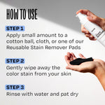 • If color slips onto your skin, simply pair the Stain Remover with the Reusable Stain Remover Pads to gently wipe it away—so your skin and clothes stay spotless from start to finish.