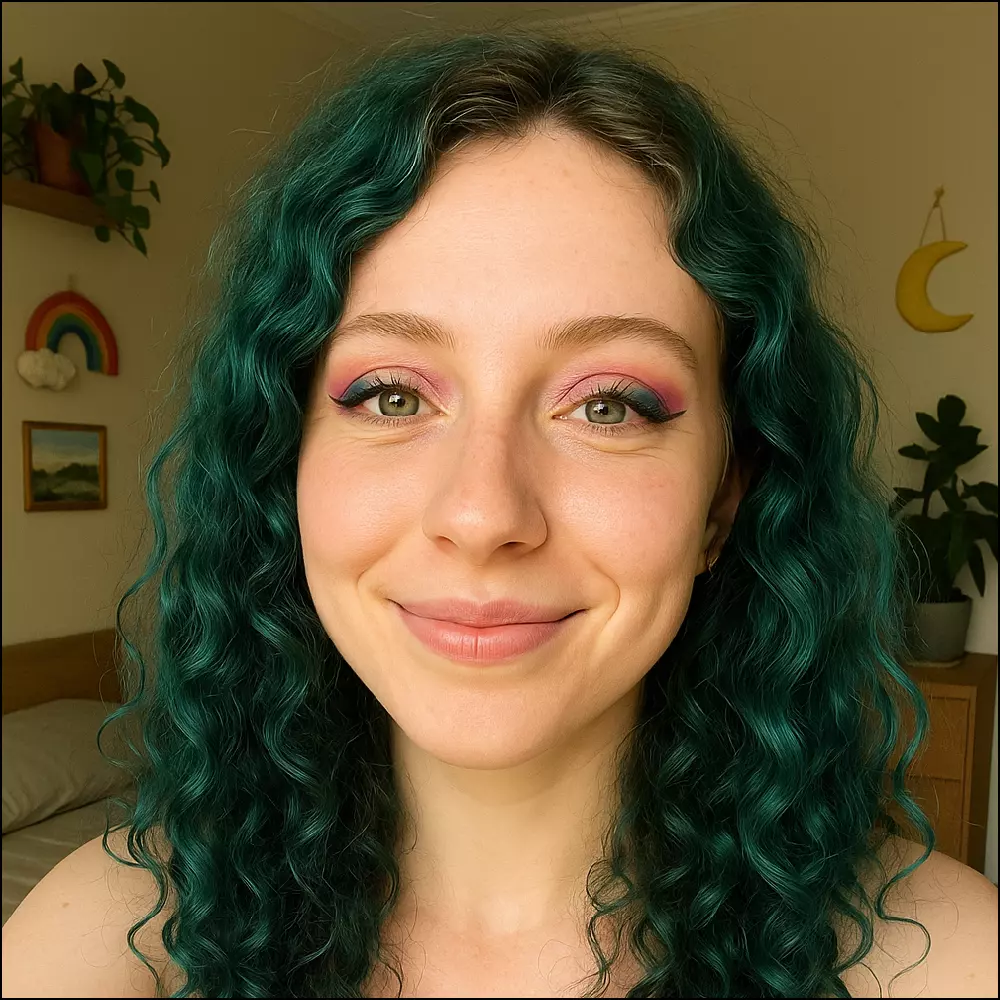 Medium Brown → You’ll see a gentle teal tint with movement. Want more? Start with The Bleach for full vibrancy.