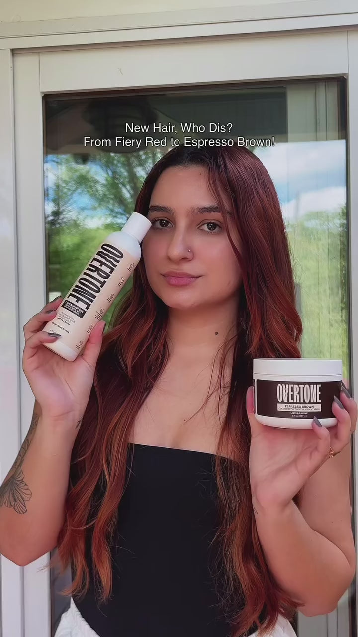Espresso Brown adds rich neutral brown tones and shine. It is most visible on blonde and brown hair and enhances depth on dark hair.