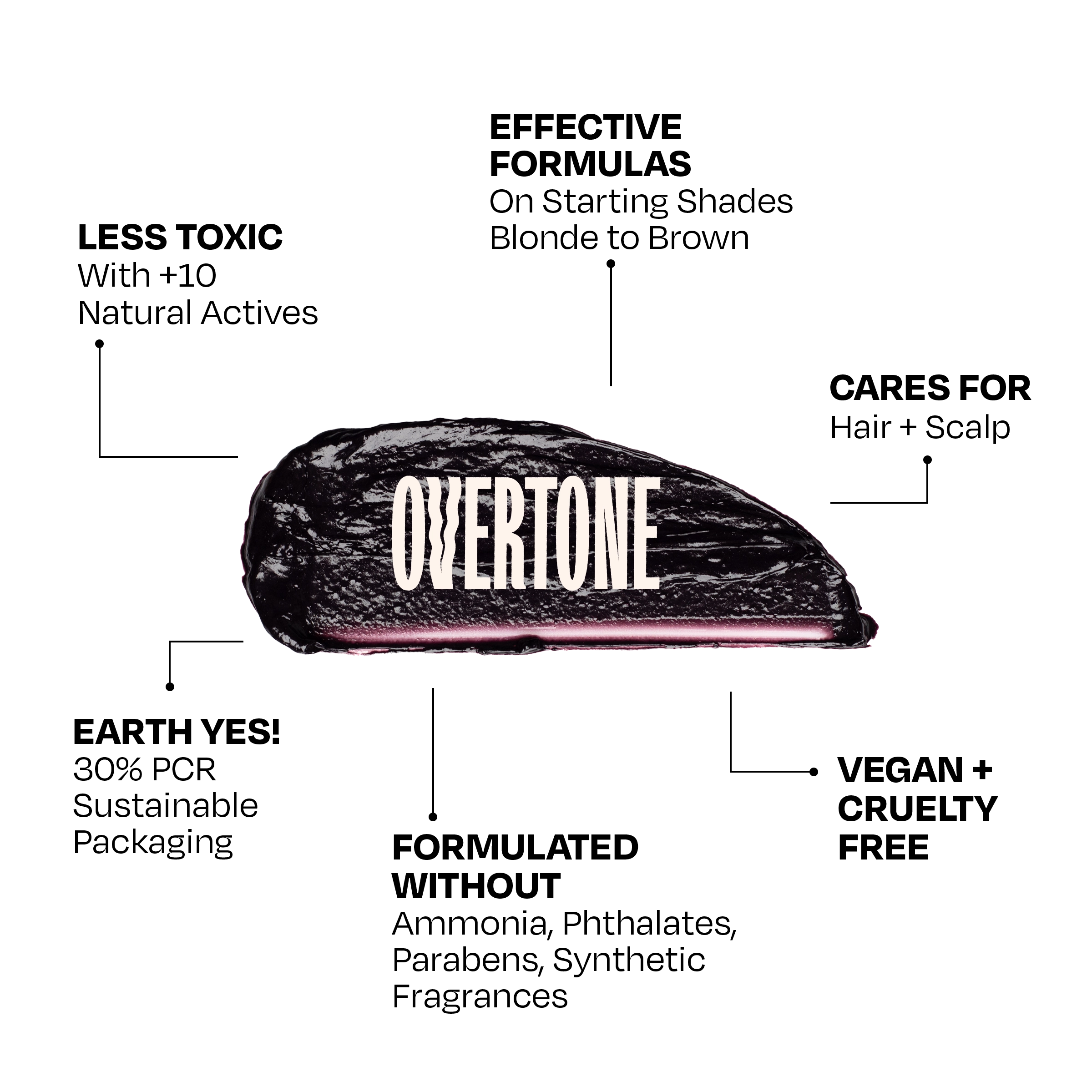 As someone starting from a medium-brown color, I love Overtone to give me a very rich natural looking black. Since I'm not making too much of a change, I appreciate being able to use something that also keeps my hair healthy and soft.